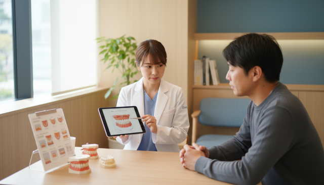 ここでは、カウンセリングから治療完了までのステップを詳しく解説します。船曳歯科医院では、患者様が納得してから治療を進めることを大切にしています。